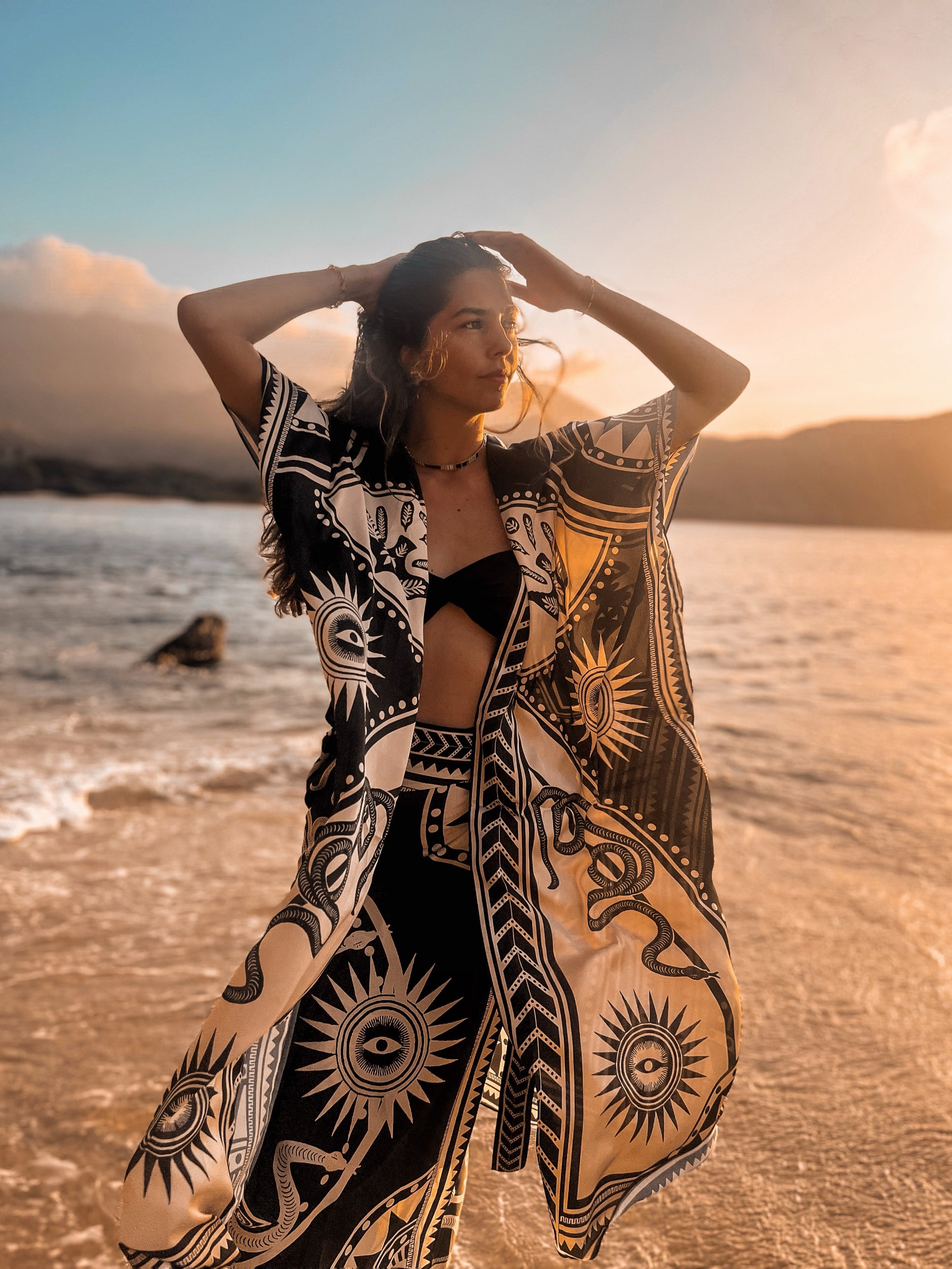 Nuestras creaciones, inspiradas por el espíritu bohemio, celebran la libertad y la creatividad. Diseñamos para quienes buscan autenticidad y autoexpresión, mezclando texturas y simbologías en cada prenda.